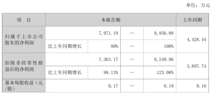 数据显示,公司报告期内归属于上市公司股东的净利润有望实现同比80%至100%的大幅增长。