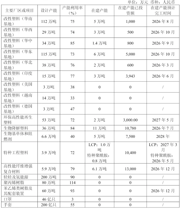 (2025年金发科技产能情况)